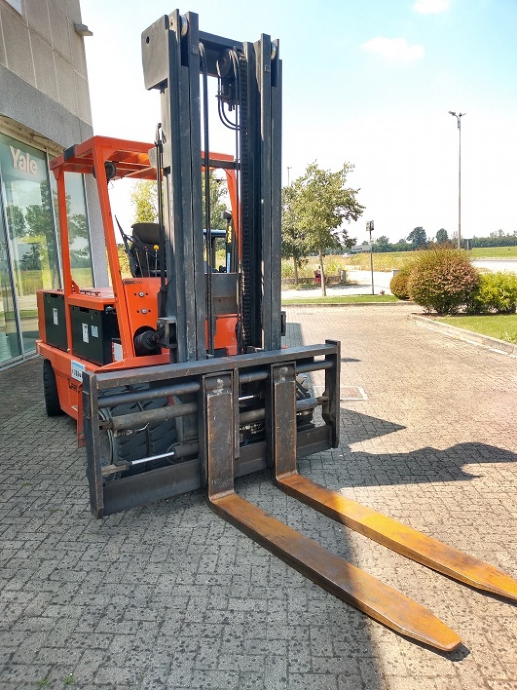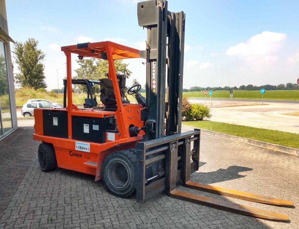 Posizionatore forche con traslatore laterale incorporato e forche pin-typeForche